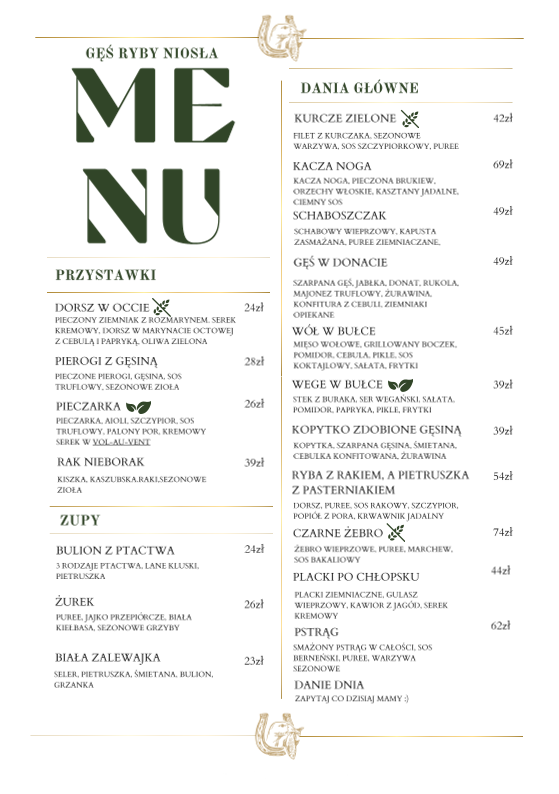 Nestled in the picturesque village of Struga, Poland, Restauracja Gęś Ryby Niosła beckons food lovers with its delightful culinary offerings and inviting atmosphere. This hidden gem, conveniently located near a horse stud farm, is not just a pit stop but a destination for those seeking exceptional Polish cuisine.